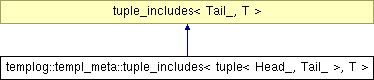 Inheritance diagram for templog::templ_meta::tuple_includes< tuple< Head_, Tail_ >, T >: